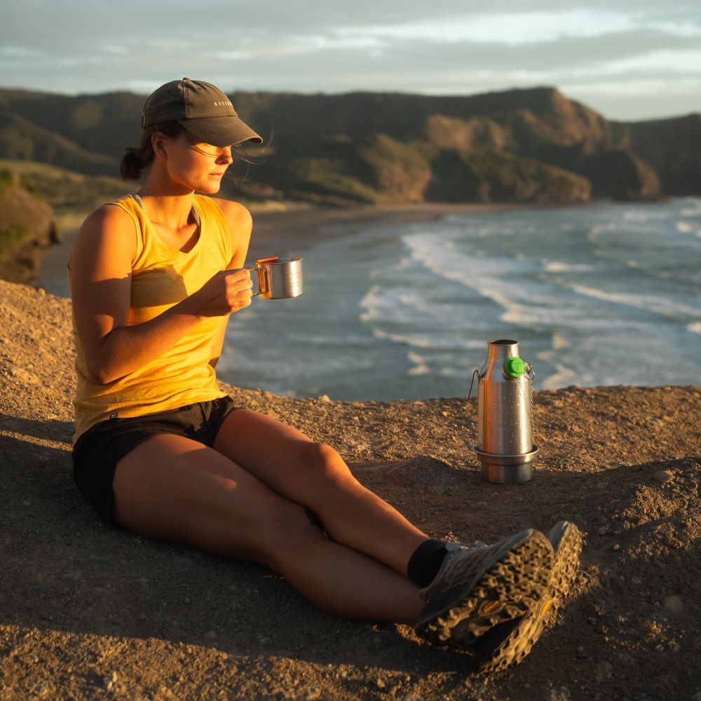 This lightweight kettle fits neatly into or onto the side of a Rucksack or Backpack.